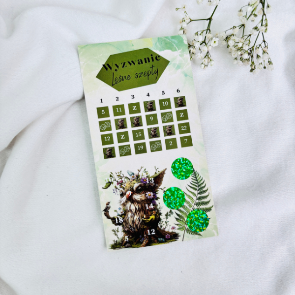 Wyzwania + zdrapki z motywem leśnych skrzatów