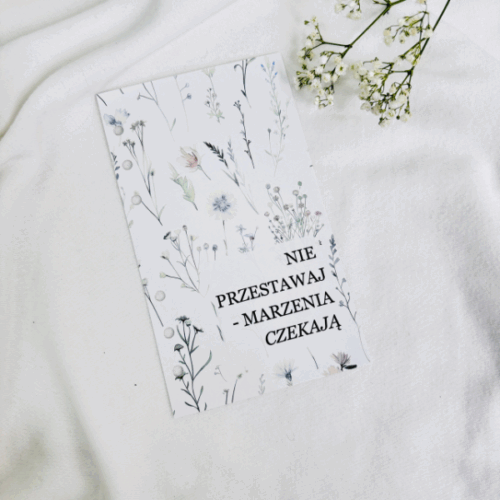 Okładki dostępne są w dwóch wariantach napisu: „Progres nie perfekcja” oraz „Nie przestawaj – marzenia czekają”. Każdy wariant występuje w rozmiarze A5 i A6, dzięki czemu dopasujesz go do swojego segregatora.