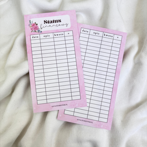 Statusy finansowe z kolekcji Rozważna i Romantyczna, dwustronne, foliowane.