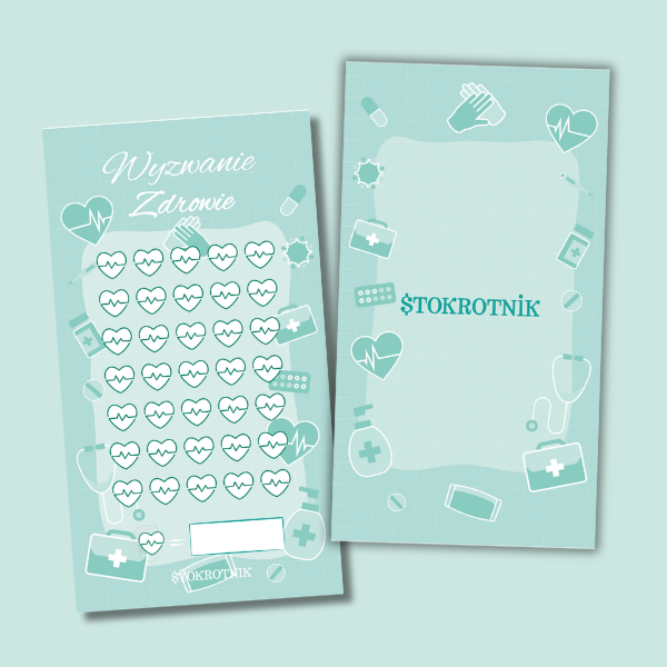 Wyzwanie zdrowie to plakietka oszczędnościowa z polami w kształcie serca! Oszczędzaj długoterminowo na nieprzewidziane, jak i zaplanowane wydatki związane ze zdrowiem.  Wyzwanie mieści się do oszczędnika A6. Jest foliowane, więc bezproblemu wykorzystasz je wielokrotnie!