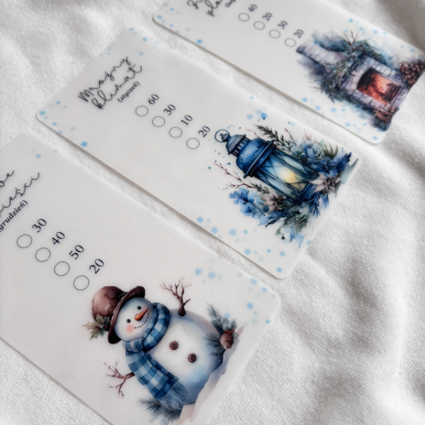 Trackery do naklejania – zamiast markerów permanentnych, przy każdym odłożeniu kwoty po prostu przyklejasz znacznik na odpowiednie pole, dzięki czemu plansza zachowuje swój piękny wygląd i możesz używać jej wielokrotnie.