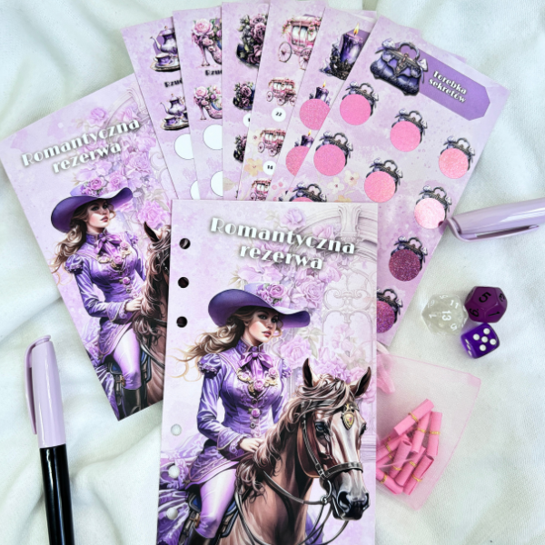 Romantyczna rezerwa – bardzo rozbudowane wyzwanie w formie bingo (12 x 20 pól) z okładką i 6 dodatkowymi mini-wyzwaniami (zdrapki, pola do zamalowania, rzuty kostką i inne). Dostępne także osobno jako samodzielny produkt.
