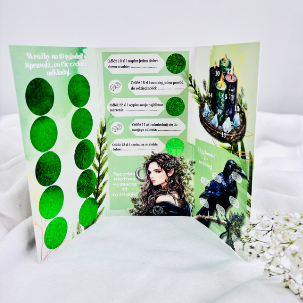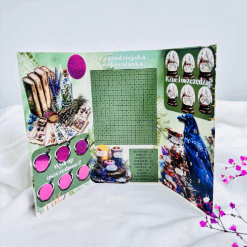 Wyzwania książeczkowe składane na trzy z motywem wiedźm to magiczny i praktyczny sposób na oszczędzanie pieniędzy, który łączy zabawę i budowanie nawyków finansowych w jednym. Każde wyzwanie wykonane jest z wysokiej jakości papieru, sztywne, wielokrotnego użytku, co zapewnia trwałość i możliwość wielokrotnego korzystania.