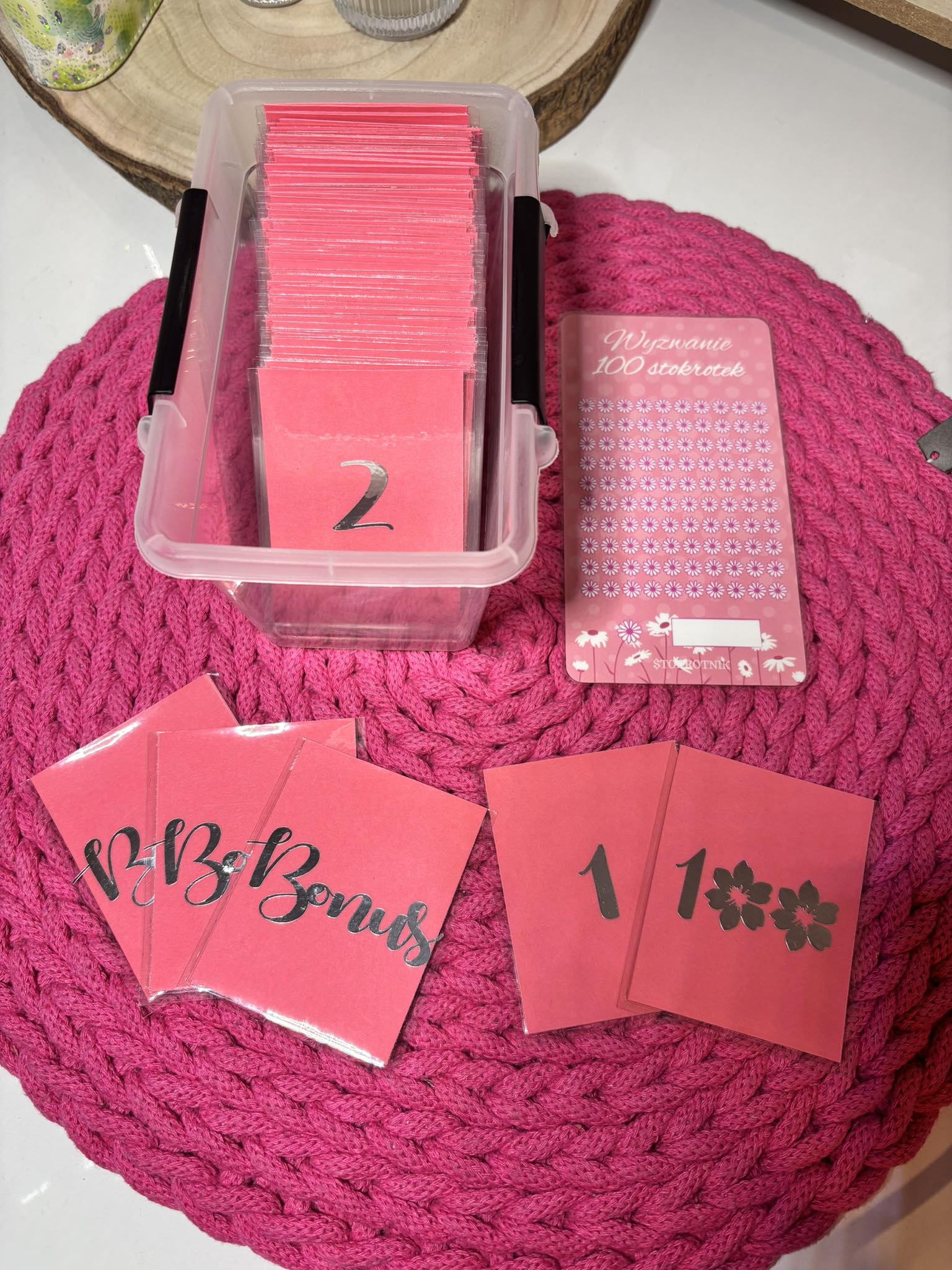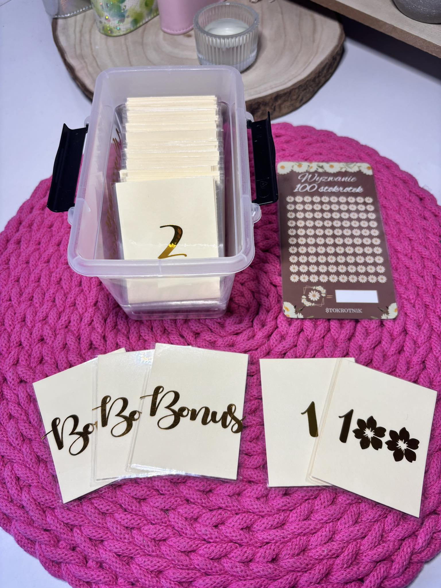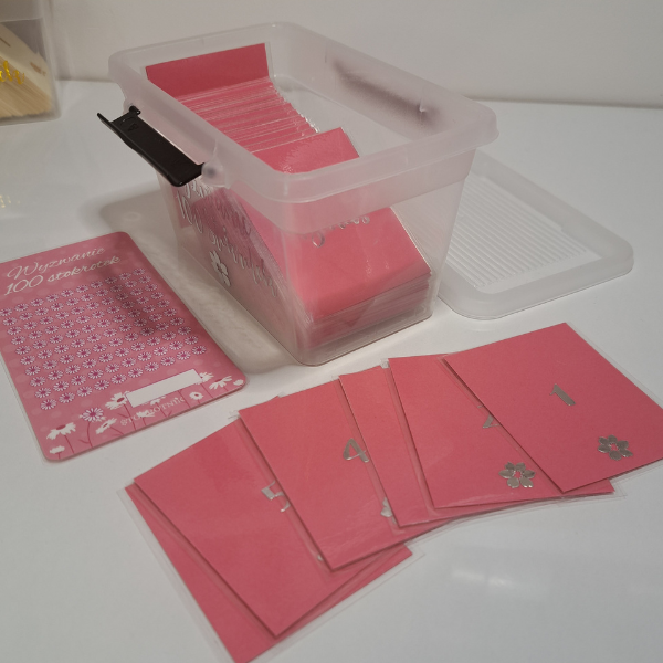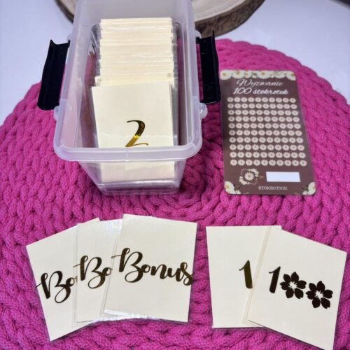 Wyzwanie 100 stokrotek powstało na wzór amerykańskiego wyzwania 100 kopert. Produkt jest w zupełności tworzony ręcznie. To rozwiązanie dla osób, które chcą odkładać pieniądze w oryginalnej formie. Wyzwanie to ma motywować do oszczędzania.