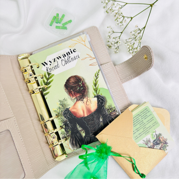 Kocioł Obfitości jest częścią Boxa Wiedźmy, co czyni go idealnym prezentem dla każdej miłośniczki magii i oszczędzania. Produkt sprzedawany jest bez segregatora widocznego na zdjęciu, dzięki czemu możesz wpiąć go do swojego ulubionego planera A6 i korzystać z niego wielokrotnie.