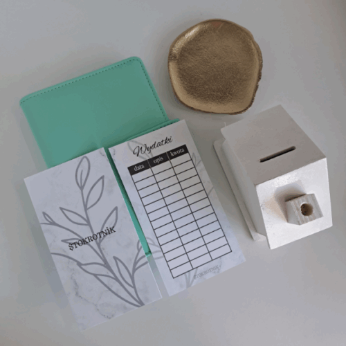 Jeśli chcesz odzyskać kontrolę nad swoimi finansami, próbując metody kopertowej, to ten box oszczędnościowy startowy, na pewno Ci w tym pomoże. Zestaw zawiera wszystko, czego potrzebujesz, aby zacząć oszczędzać i świadomie dysponować swoimi wydatkami.