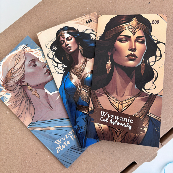 Wejdź w świat mocy, piękna i obfitości z wyjątkowymi wyzwaniami oszczędnościowymi inspirowanymi boginiami! W zestawie „Wyzwania z Motywem Bogini” znajdziesz trzy unikalne wyzwania, które sprawią, że oszczędzanie stanie się inspirującą przygodą, pełną emocji i magicznych chwil. Każde z wyzwań daje Ci możliwość osiągnięcia finansowych celów w sposób pełen gracji, precyzji i szczęścia.
